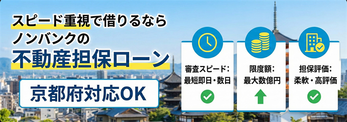 銀行での借り入れが難しい場合や、よりスピーディーな対応を求める場合には、ノンバンクの不動産担保ローンが選択肢となります。